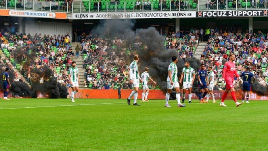 Μάλιστα, στη συνέχεια ορισμένοι από αυτούς εισέβαλαν στον αγωνιστικό χώρο, με την ασφάλεια του σταδίου ωστόσο να τους σταματά άμεσα. Όπως ανακοίνωσε ο ίδιος ο Αίαντας, το ματς εν τέλει οδηγήθηκε σε οριστική διακοπή, ενώ μένει να φανεί ποια θα είναι η τιμωρία της Γκρόνιγκεν.