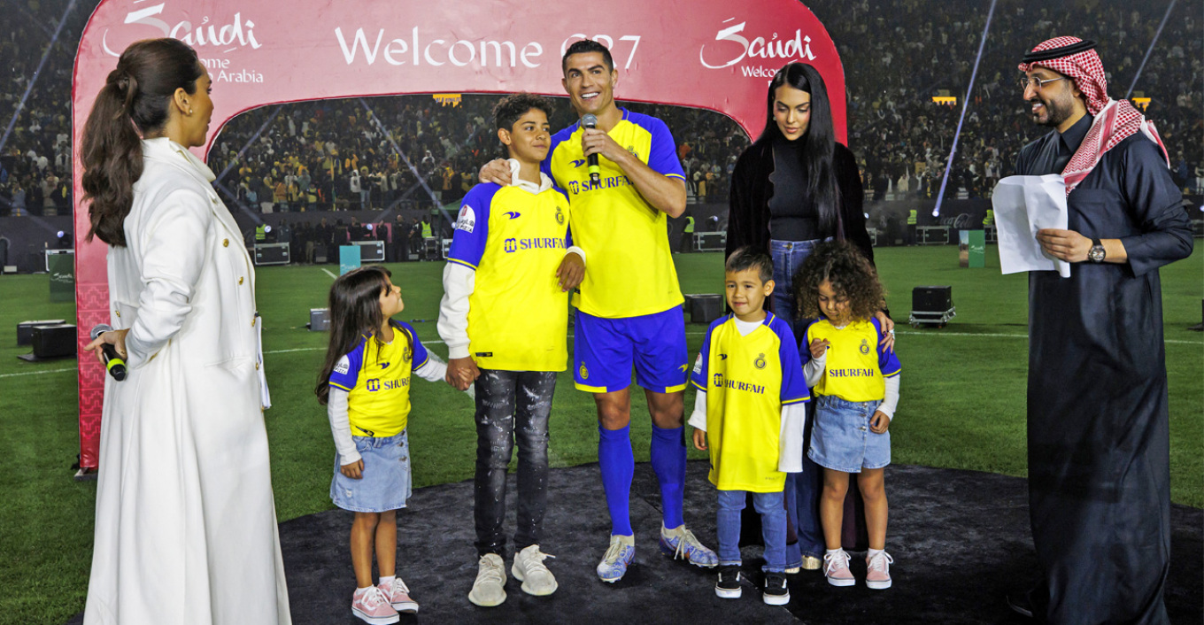 Ο σύλλογος της Σαουδικής Αραβίας παρουσίασε στους φιλάθλους του τη μεγαλύτερη μετεγγραφή στην ιστορία της, και την πιο ακριβή στον κόσμο, με τους οπαδούς να γεμίζουν το “Mrsool Park” του Ριάντ και να βλέπουν τον Πορτογάλο επιθετικό να “αποθεώνεται” εντός αγωνιστικού χώρου και να έχει στο πλάι του τη σύντροφό του, Τζορτζίνα Ροντρίγκες και τα πέντε τους παιδιά.