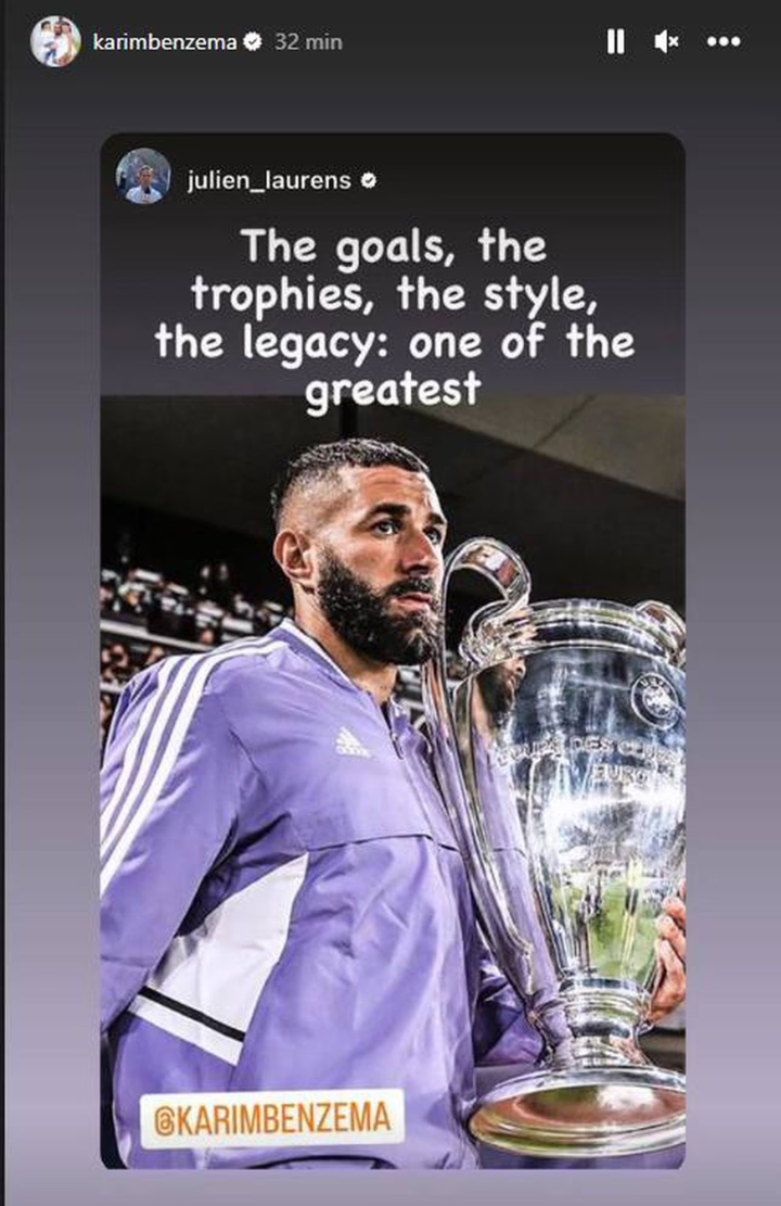 Ο κάτοχος της Χρυσής Μπάλας έκανε έκανε repost ένα… αποχαιρετιστήριο story στο Instagram του συμπατριώτη δημοσιογράφου στο ESPN, Ζουλιάν Λοράν, το οποίο έγραφε: «Τα γκολ, τα τρόπαια, το στυλ, η κληρονομιά: ένας από τους σπουδαιότερους».
