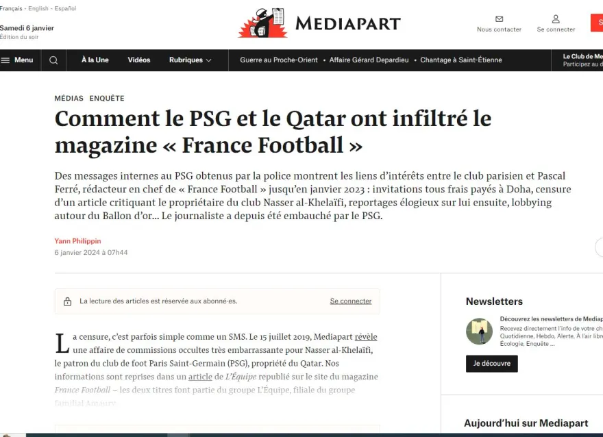 Σύμφωνα με τις «Le Monde» και «Mediapart», η Παρί φαίνεται να ερευνάται από την Αστυνομία για πιέσεις και ύποπτα δώρα προς το «France Football», υπεύθυνο για την διοργάνωση της Χρυσής Μπάλας, προκειμένου το βραβείο να καταλήξει στην αγκαλιά του Αργεντινού.