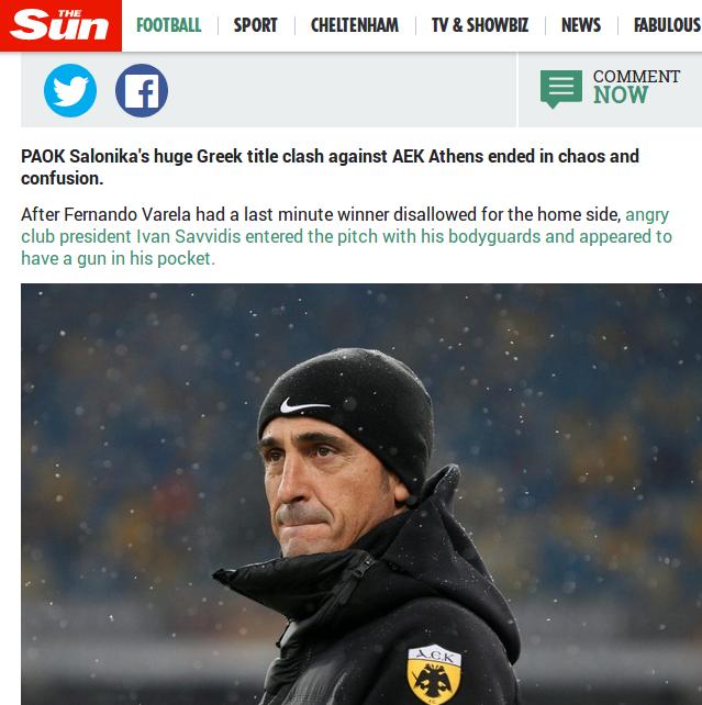 Θέμα έγιναν τα όσα διαδραματίστηκαν στην Τούμπα και στην στην ευρείας κυκλοφορίας ταμπλόιντ The SUN