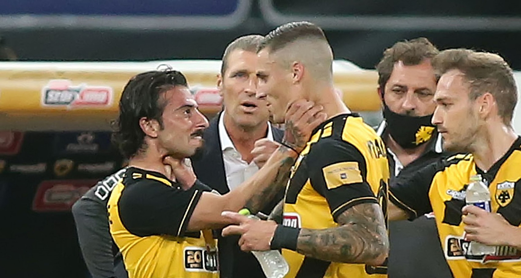 Ο Βόσνιος αντέδρασε στην κίνηση του Ιταλού εξτρέμ και ρόλο πυροσβέστη έσπευσε να παίξει ο τεχνικός της ΑΕΚ, Μάσιμο Καρέρα, ο οποίος τους έκανε έντονες παρατηρήσεις με αποτέλεσμα το συμβάν να λήγει εκεί και τους δύο παίκτες να τα βρίσκουν.