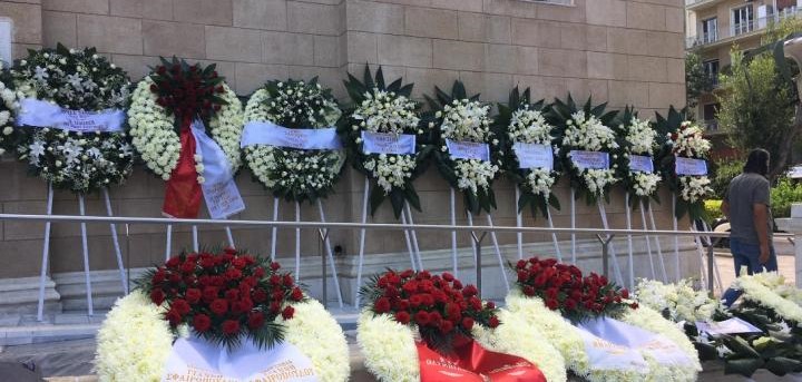 Από τα εκατοντάδες στεφάνια που έχουν κατατεθεί ξεχωρίζουν αυτά των FIFA, την UEFA, του Γιώργου Βαρδινογιάννη, του Δημήτρη Μελισσανίδη, της Τουρκικής ομοσπονδίας ποδοσφαίρου, των ΠΑΕ ΠΑΟΚ, ΠΑΕ Ολυμπιακόύ, ΚΑΕ Παναθηναϊκού, Σωκράτη και Ελένης Κόκκαλη και του Δήμαρχου Αθηναίων, Κώστα Μπακογιάννη.