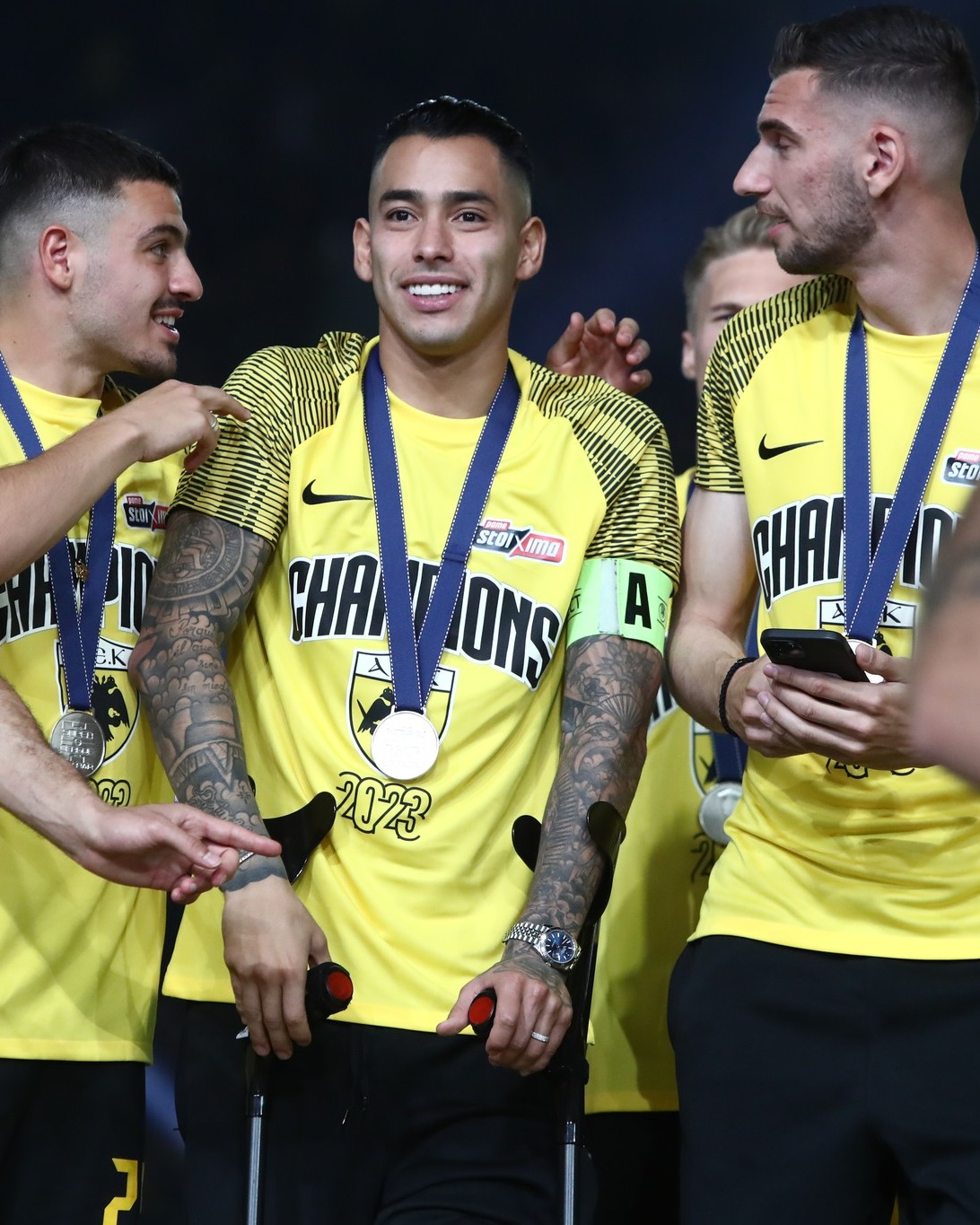 Ο Αραούχο εμφανίστηκε με πατερίτσες και γνώρισε την αποθέωση και σήκωσε το τρόπαιο μαζί με τον Πέτρο Μάνταλο.