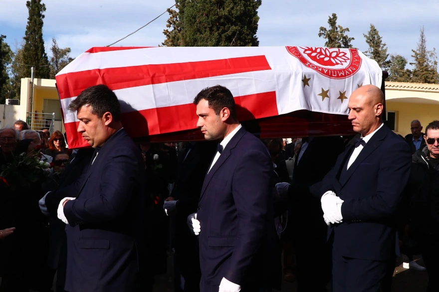 Συγγενείς, φίλοι και η οικογένεια του Ολυμπιακού είπαν το τελευταίο «αντίο» στον Γιώργο Δαρίβα το μεσημέρι της Πέμπτης στο κοιμητήριο Καισαριανής.