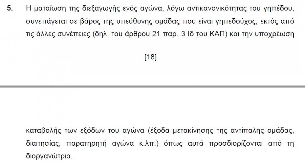 Να σημειωθεί πως σύμφωνα με τον Κανονισμό Αγώνων Ποδοσφαίρου, ο αντικανονικός αγωνιστικός χώρος είναι ένας από τους λόγους αναβολής του παιχνιδιού.