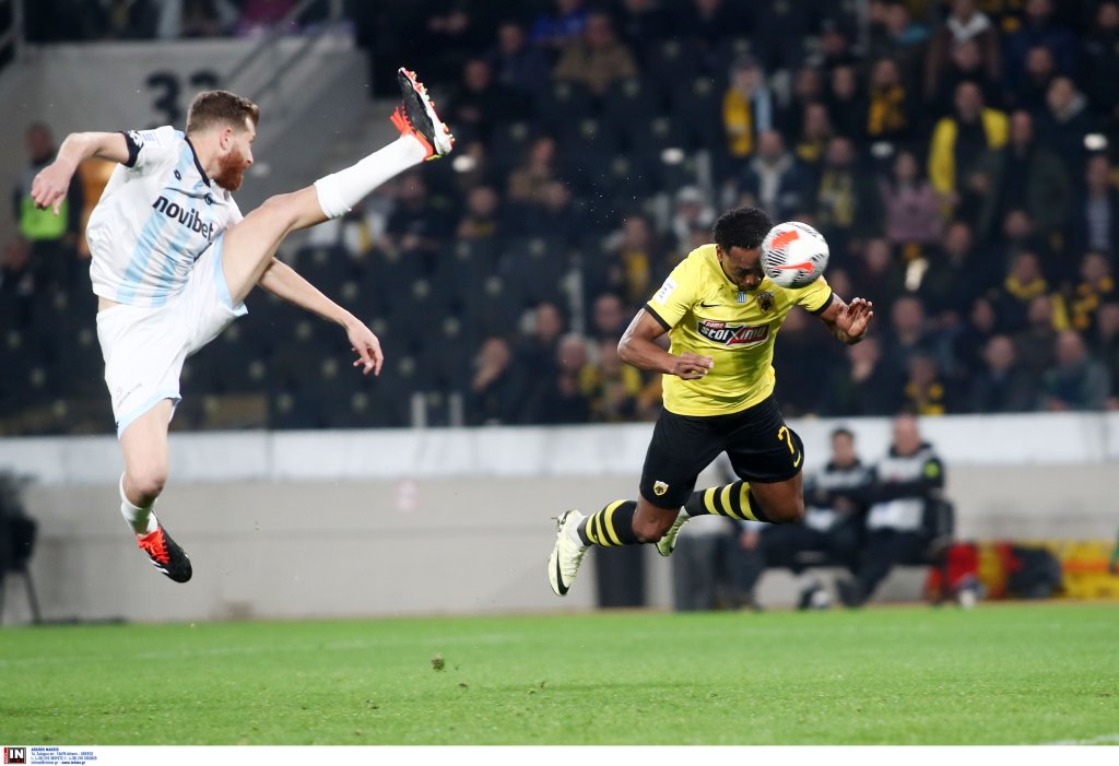 Εκπληκτική κίνηση του Ελίασον από δεξιά και σέντρα ακριβείας στον Λιβάι Γκαρσία, ο οποίος με κεφαλιά-ψαράκι έγραψε το 1-0. Ένα γκολ-σήμα κατατεθέν της ΑΕΚ του Αλμέιδα: ταχύτητα, ποιότητα, δημιουργία, εκτέλεση.