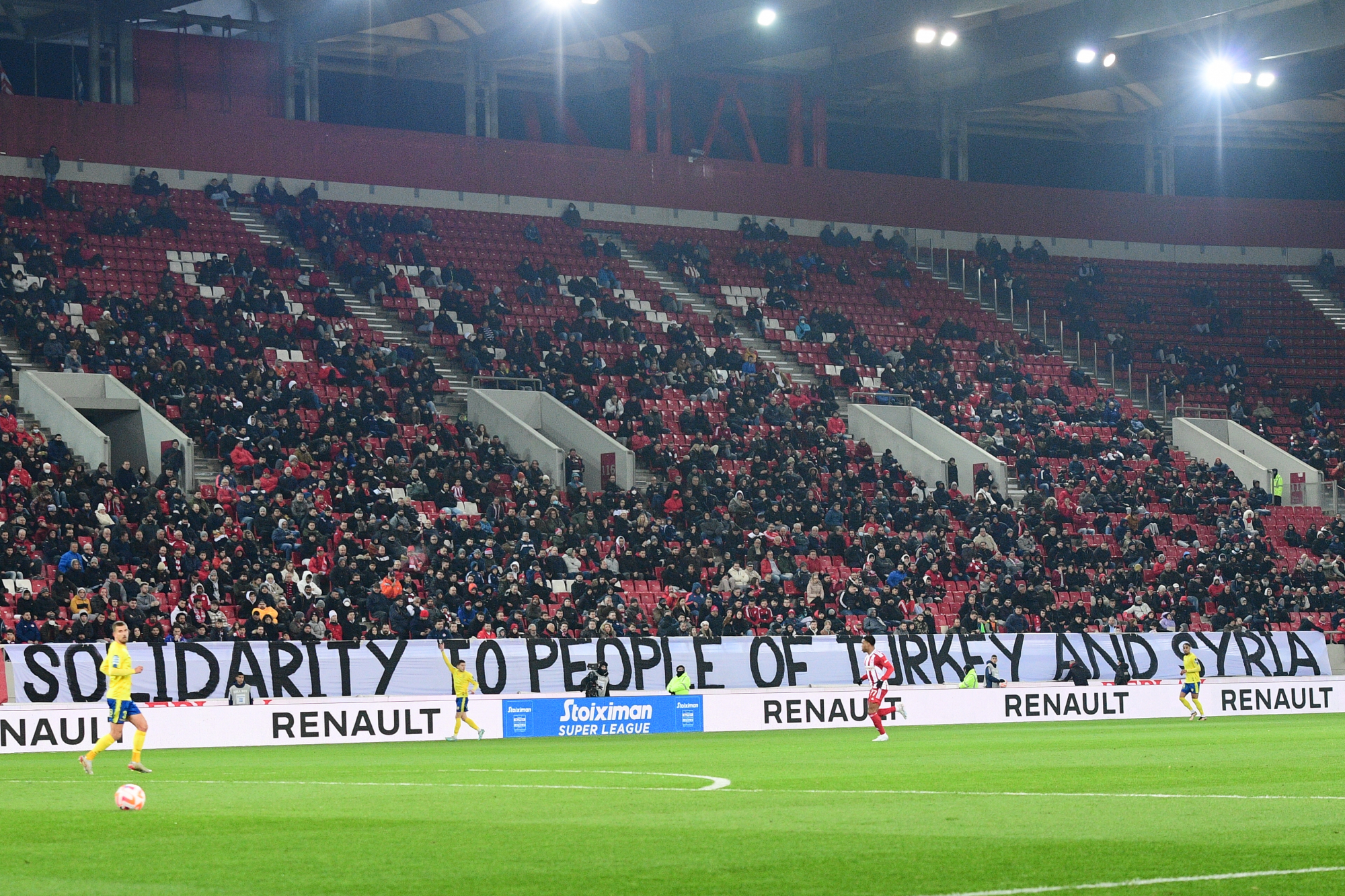 Ο Ολυμπιακός υποδέχεται τον Παναιτωλικό για την 22η αγωνιστική της Super League και στο γήπεδο “Γεώργιος Καραϊσκάκης” υπήρξε πανό για την Τουρκία και τη Συρία.