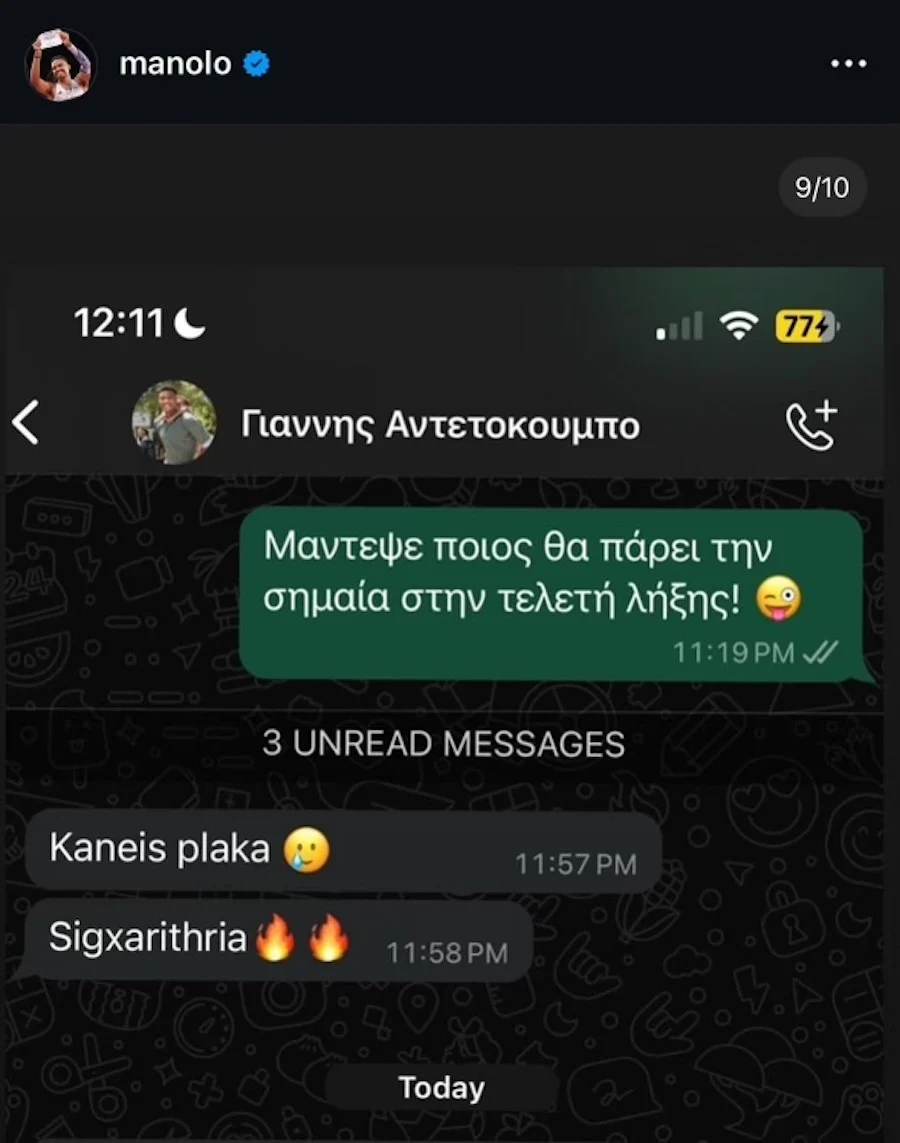 Από την πλευρά του, ο σταρ των Μιλγουόκι Μπακς απάντησε: «Πλάκα κάνεις! Συγχαρητήρια…».