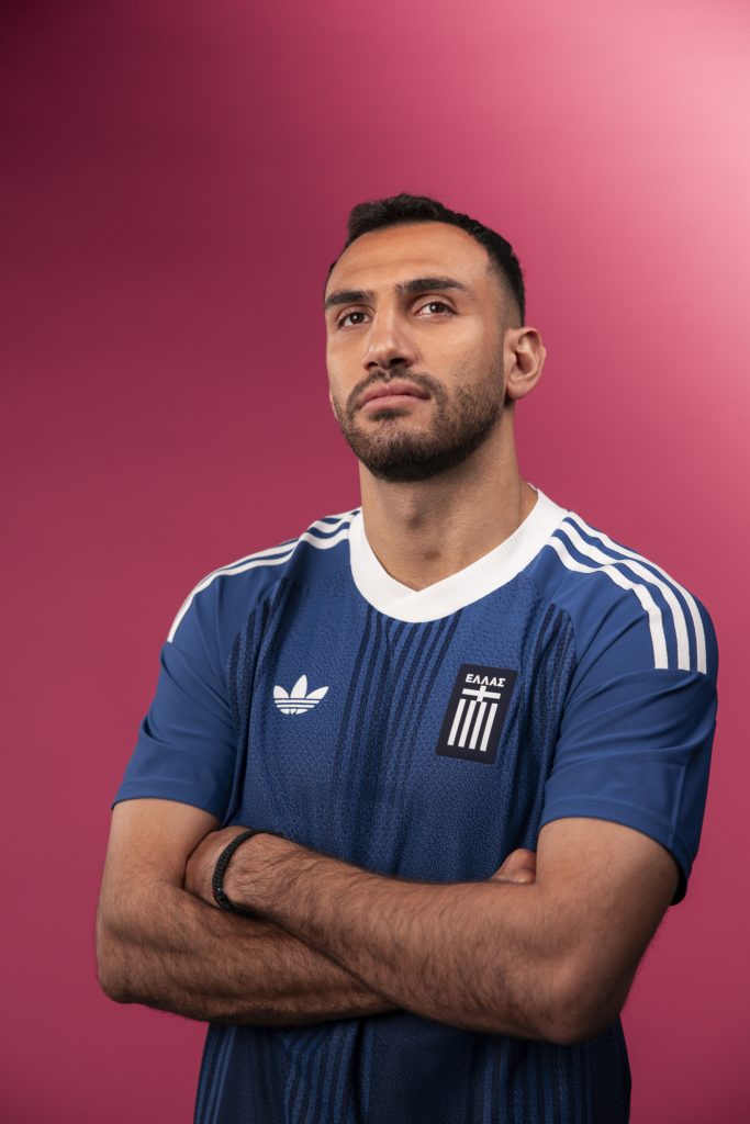 Εμπνευσμένη από τις εμβληματικές εμφανίσεις της δεκαετίας του ’80, η νέα φανέλα ξεχωρίζει για τη βαθιά μπλε απόχρωσή της, ενώ οι γραφικές κάθετες ρίγες παραπέμπουν διακριτικά στους χαρακτηριστικούς πυλώνες της ελληνικής αρχιτεκτονικής.