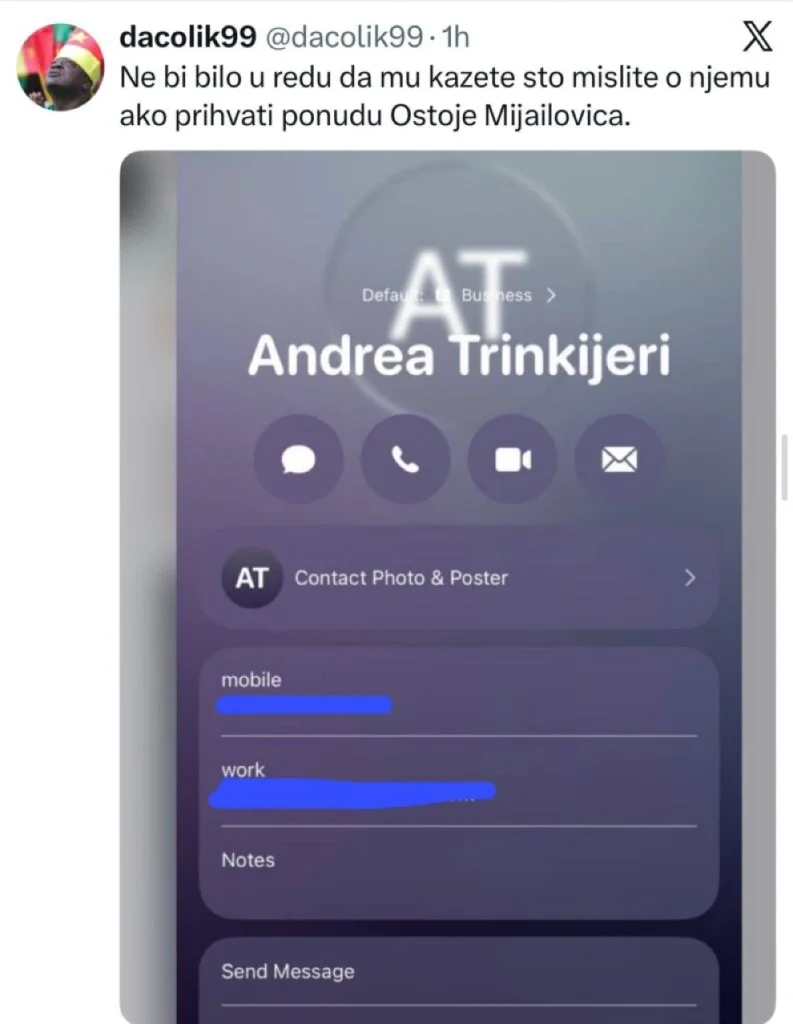 Και αυτό γιατί οι οπαδοί της σερβικής ομάδας δημοσίευσαν στα social media τους τηλεφωνικούς αριθμούς του νέου προπονητή Αντρέα Τρινκιέρι και του γνωστού μάνατζερ Μίσκο Ραζνάτοβιτς.