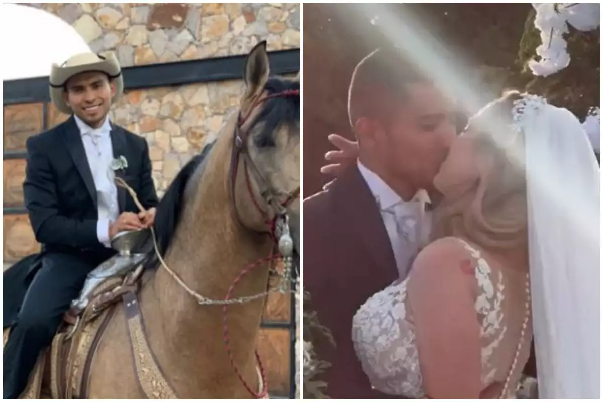 Ο 27χρονος Ορμπελίν Πινέδα έφτασε στην εκκλησία όπου και παντρεύτηκε την αγαπημένη του Γκαμπριέλα Ρίος, πάνω σε ένα καφέ άλογο φορώντας κι ένα παραδοσιακό καπέλο.