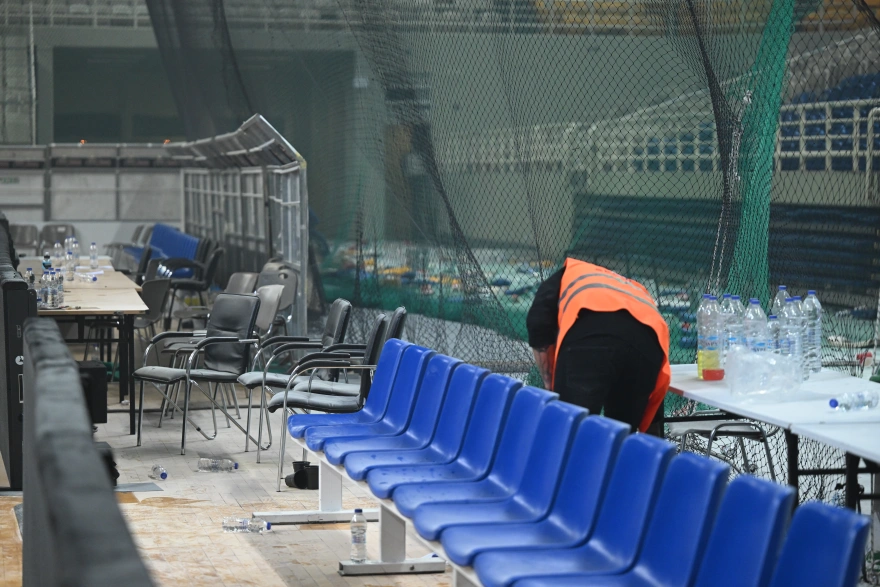 Ακολούθησαν και οι διαιτητές. Παράλληλα αρκετός κόσμος άρχισε να αποχωρεί από τις εξέδρες και μετά από 30′ από τα μεγάφωνα ζητήθηκε εκκένωση όπως αποφάσισαν οι διαιτητές του αγώνα.