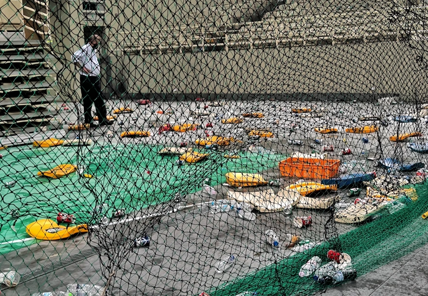 Το κλειστό γέμισε καπνούς ενώ επιχειρήθηκε και είσοδος οπαδών στον αγωνιστικό χώρο η οποία εμποδίστηκε. Τα αντικείμενα έπεφταν βροχή με αποτέλεσμα οι παίκτες του Ολυμπιακού να φύγουν για τα αποδυτήρια.