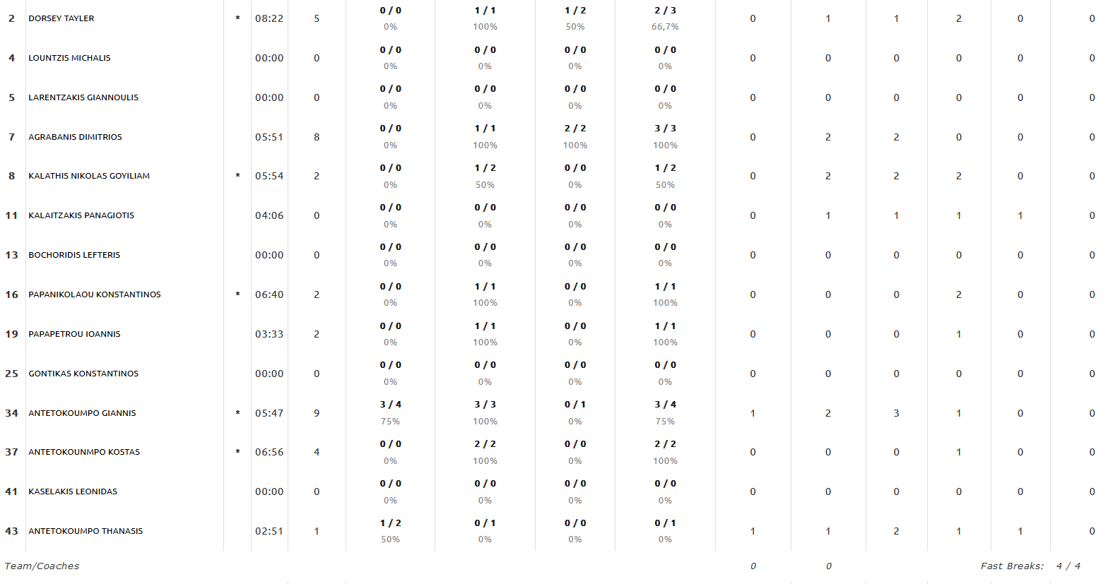 One man show από τον Γιάννη Αντετοκούνμπο που σημείωσε double double, με 31 πόντους (7/10 βολές, 9/10 δίποντα, 2/3 τρίποντα), αλλά και 10 ριμπάουντ, 3 ασίστ, 1 κλέψιμο, 7 κερδισμένα φάουλ και 38 βαθμούς στο σύστημα αξιολόγησης, σε 20:33 λεπτά συμμετοχής.