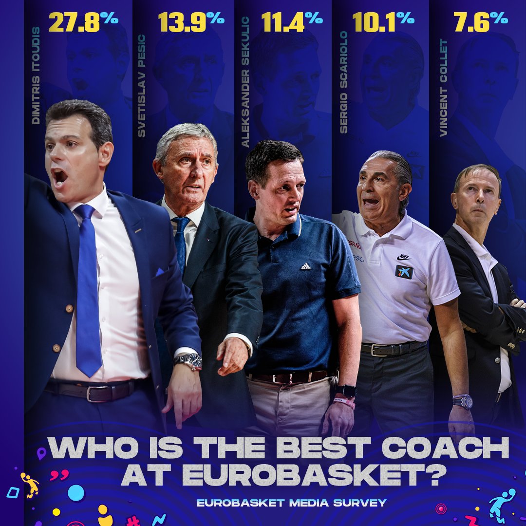 Η επίσημη ιστοσελίδα της FIBA προχώρησε σε μια έρευνα όσον αφορά το Eurobasket που ξεκινάει την 1η Σεπτεμβρίου και απευθύνθηκε σε όλα τα διαπιστευμένα μέλη των μέσων ενημέρωσης στη διοργάνωση. Φυσικά από τις απαντήσεις δεν έλειπε η ελληνική ομάδα, καθώς από τη στιγμή που θα παρουσιαστεί πλήρης, λογίζεται ως από τα πρώτα φαβορί για την κατάκτηση του τροπαίου. Όσον αφορά τον καλύτερο προπονητή, την τιμητική του είχε ο Δημήτρης Ιτούδης ο οποίος ψηφίστηκε ως πρώτο φαβορί για τον καλύτερο κόουτς της διοργάνωσης.
