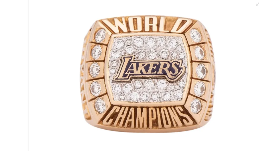 Κατασκευασμένο από χρυσό 14 καρατιών, το δαχτυλίδι μεγέθους 11 ½ ζυγίζει 59,6 γραμμάρια και έχει 40 εντυπωσιακά διαμάντια. Η λέξη «Lakers» βρίσκεται στο κέντρο με μωβ σμάλτο, ενώ αναγράφεται «World» και «Champions» στο πάνω και το κάτω μέρος του σχεδίου.