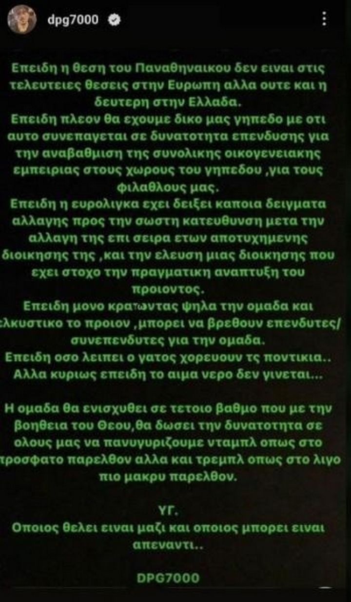 “Επειδή η θέση του Παναθηναϊκού δεν είναι στις τελευταίες θέσεις στην Ευρώπη αλλά ούτε και η δεύτερη στην Ελλάδα.