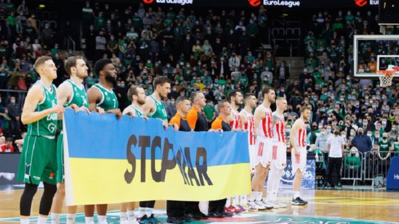 Serbian players were not holding the 'Stop The War' banner during Zalgiris v Crvena Zvezda.