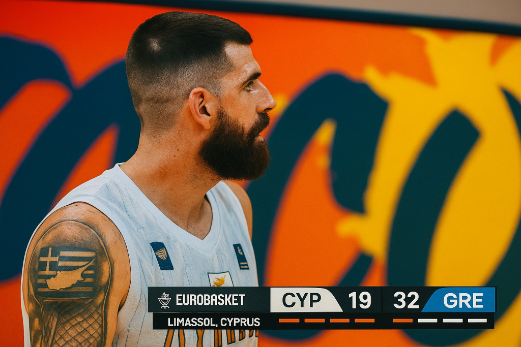 Ο διεθνής Κύπριος γκαρντ έχει αποτυπώσει την Κύπρο μέσα σε μια ελληνική σημαία, ένα σύμβολο που εκφράζει τη βαθιά σύνδεση μεταξύ των δύο χωρών.