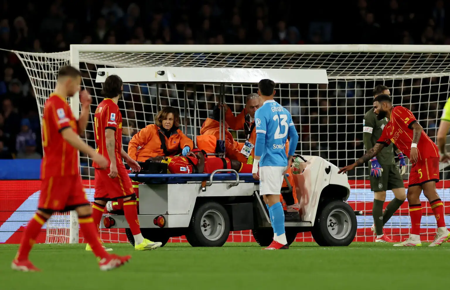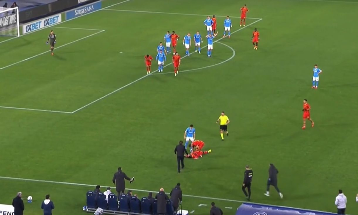 PAURA AL MARADONA: LAMECK BANDA CROLLA A TERRA PER UN DOLORE AL PETTO minuti di gelo allo stadio durante Napoli-Lecce prima dei segnali rassicuranti dello staff medico.#NapoliLecce #Banda https://t.co/IXtPhLOVTl