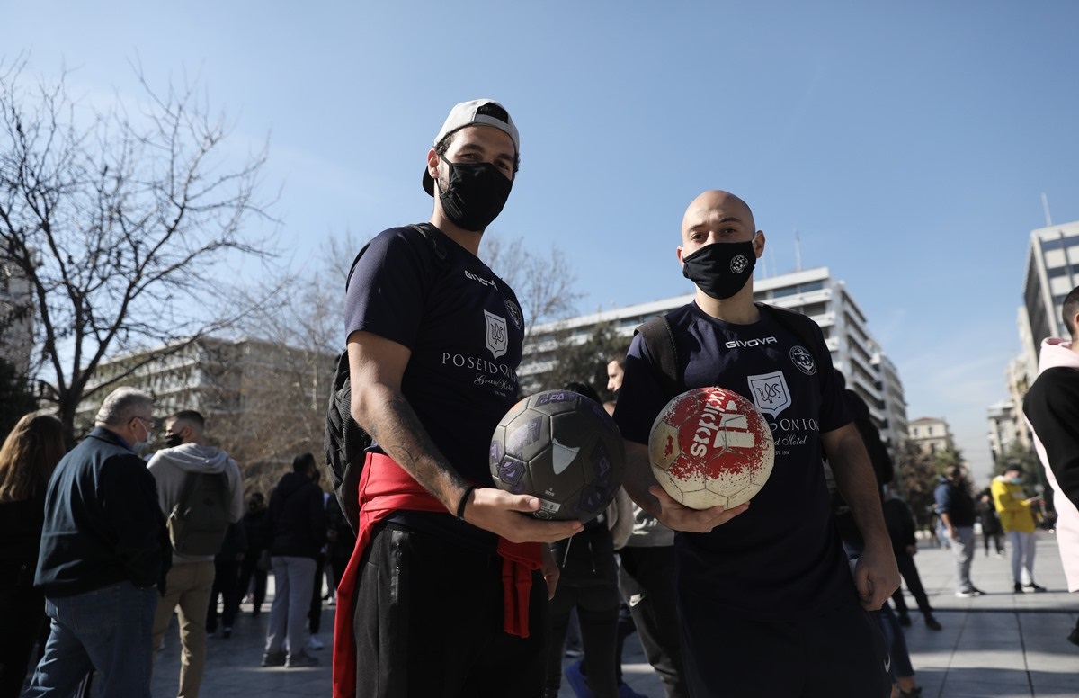 Στην πλατεία Συντάγματος έχουν συγκεντρωθεί αθλήτριες, αθλητές και προπονητές, με σκοπό να διαμαρτυρηθούν για το κλείσιμο των χαμηλότερων κατηγοριών του ελληνικού αθλητισμού.