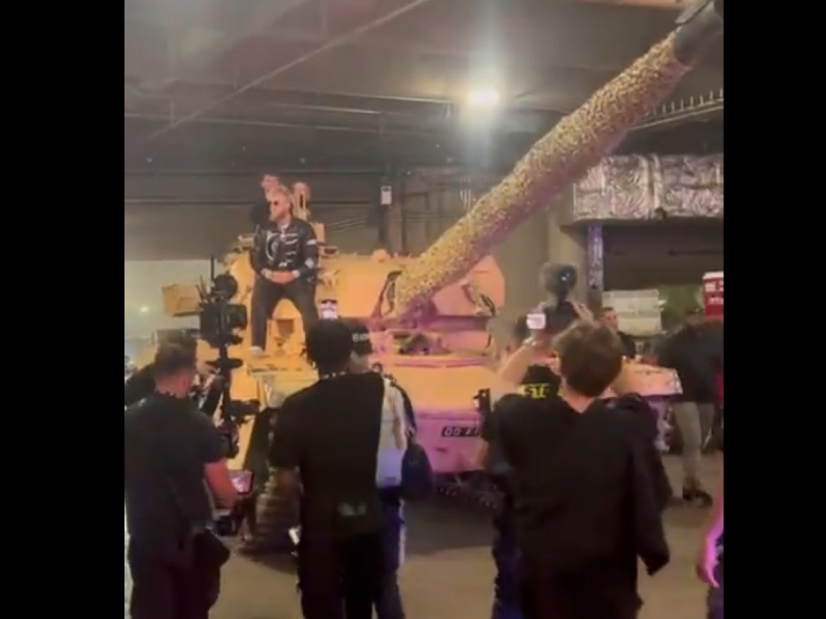 Jake Paul pulled up to his fight against Nate Diaz in a TANK 😳pic.twitter.com/dg0ZPVA77n