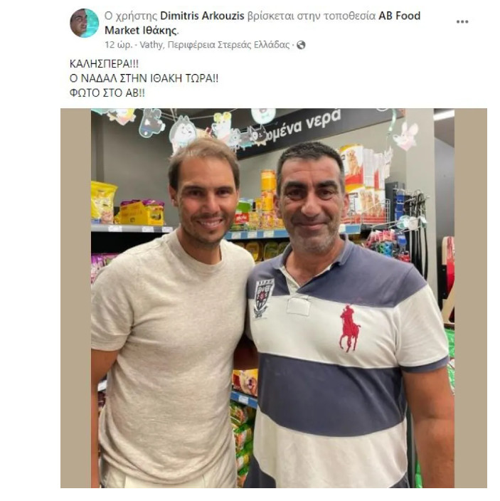 Στη συνέχεια ο Ισπανός θρύλος του τένις πέρασε μια βόλτα και από το Μεγανήσι ενώ χθες, Τετάρτη, βρέθηκε στην Ιθάκη.