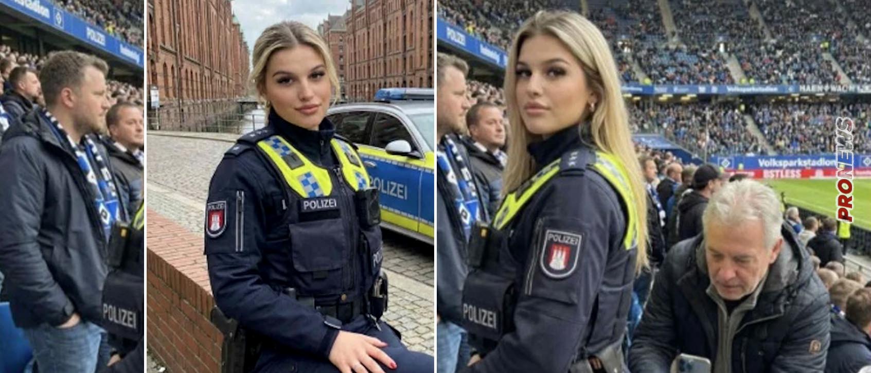 Μία εντυπωσιακή αστυνομικός κατάφερε να «μαγνητίσει» όλα τα βλέμματα πάνω της σε ποδοσφαιρικό αγώνα στο Αμβούργο.