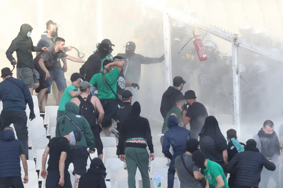 Συγκεκριμένα, επεισόδια ξέσπασαν μία ώρα περίπου πριν την έναρξη του τελικού κυπέλλου Ελλάδας, ανάμεσα σε ΠΑΟΚ και Παναθηναϊκό, καθώς οπαδοί και των δύο ομάδων επιτέθηκαν στις διμοιρίες των ΜΑΤ που διαχωρίζουν τα δύο πέταλα με τους φιλάθλους των δύο ομάδων.