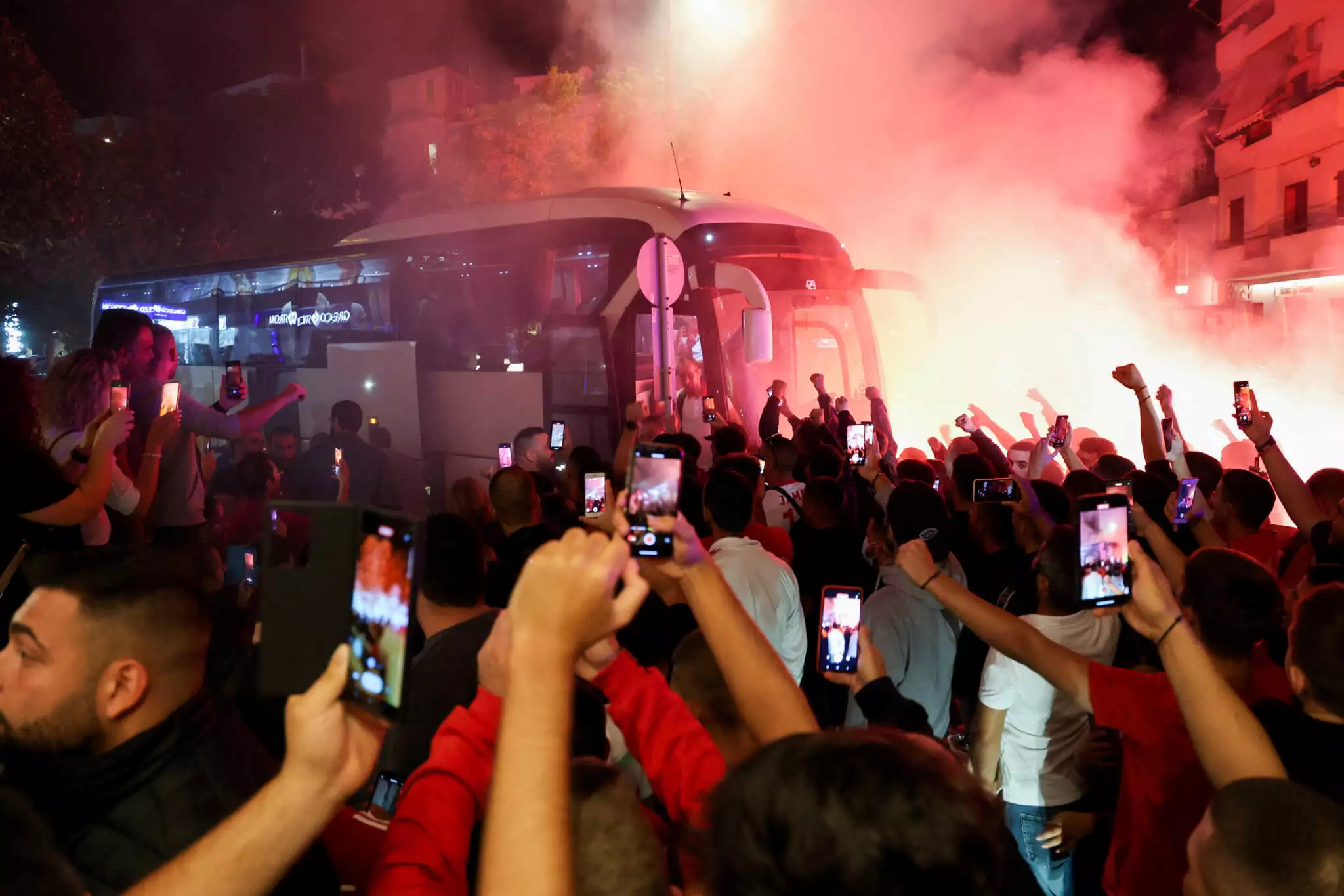 Συνθήματα, καπνογόνα… ένα καυτό κλίμα για τον Ντιέγκο Μαρτίνεθ και τους παίκτες του, με τον κόσμο να ζητάει τη νίκη του Ολυμπιακού μέσα στο «Γεντί Κουλέ».