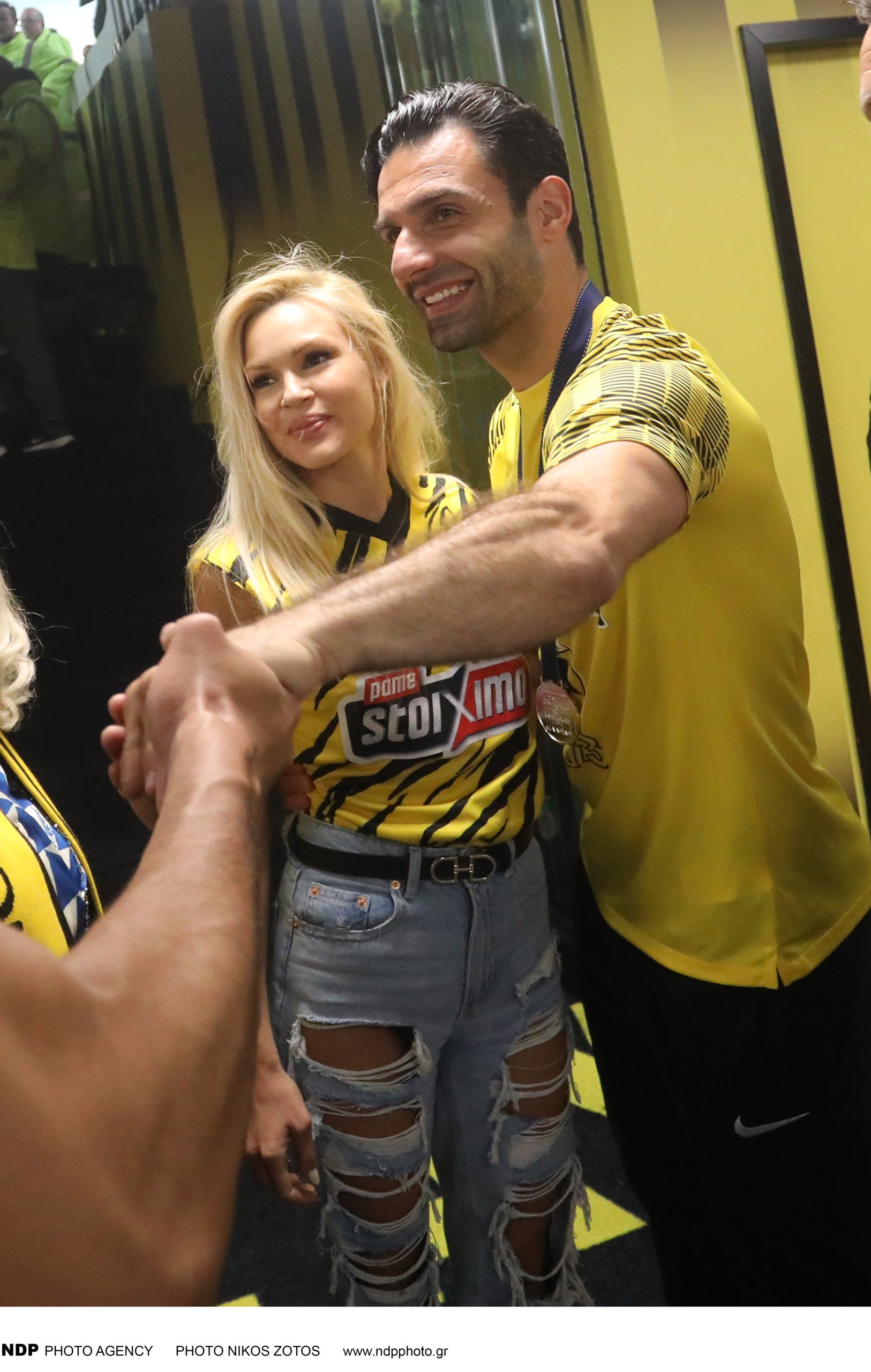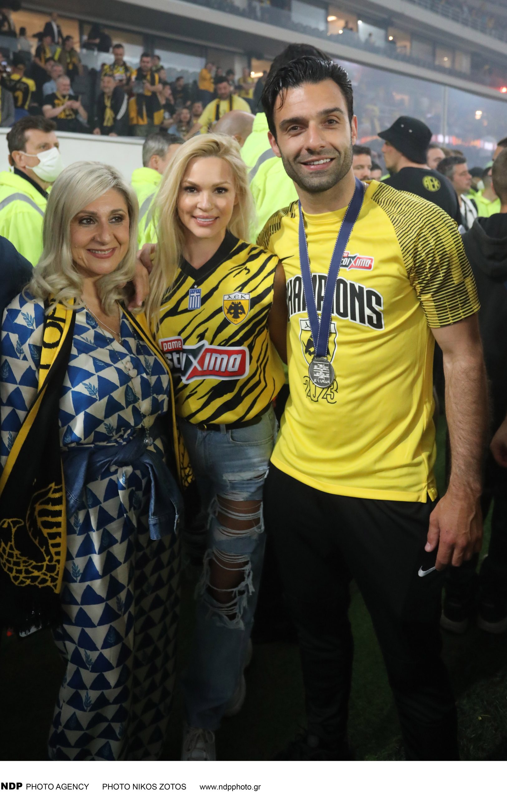 Στις κερκίδες βρέθηκε φυσικά και η Βίκυ Κάβουρα να πανηγυρίσει και να βγει και φωτογραφίες με την μητέρα του Γιώργου Τζαβέλλα και τον ίδιο.