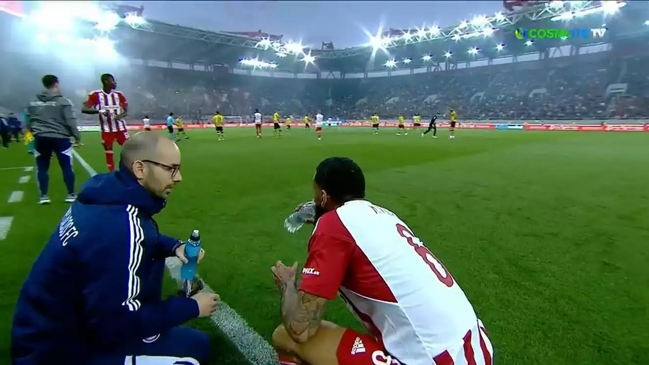 Έτσι και στο Ολυμπιακός – ΑΕΚ, η αναμέτρηση σταμάτησε για λίγα λεπτά και παίκτες όπως ο Εμβιλά του Ολυμπιακού, αλλά και ο διαιτητής του αγώνα, πήγαν στον πάγκο για να φάνε κάτι στα γρήγορα.