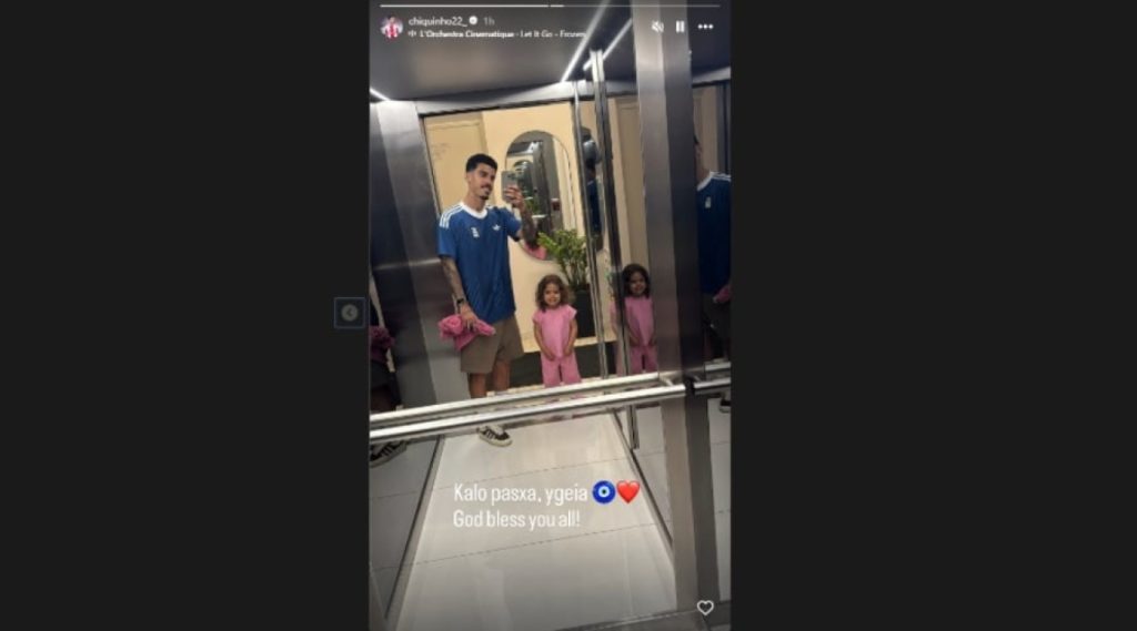 Συγκεκριμένα, ο Πορτογάλος μεσοεπιθετικός των «ερυθρόλευκων» ανάρτησε στόρι στα social media φορώντας φανέλα της Εθνικής ομάδας και ευχόμενος «Καλό Πάσχα με υγεία» στα ελληνικά, δείχνοντας για ακόμη μία φορά τη σύνδεσή του με τη χώρα μας.