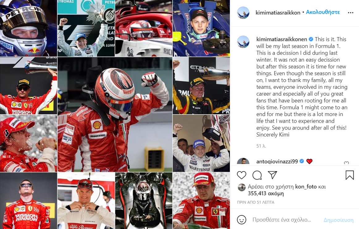 Ο Κίμι Ραϊκόνεν ανακοίνωσε ότι στο τέλος της σεζόν θα αποχωρήσει από την ενεργό δράση, 20 χρόνια μετά το ντεμπούτο του!
