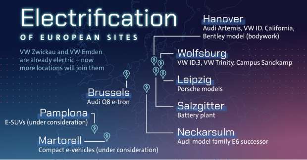 Συγκεκριμένα, €21 δισ. θα επενδυθούν στο εργοστάσιο παραγωγής στην Κάτω Σαξονία της Γερμανίας. Επιπλέον η μονάδα παραγωγής στο Ανόβερο θα μετατραπεί έτσι ώστε να κατασκευάζει μόνο ηλεκτρικά αυτοκίνητα.