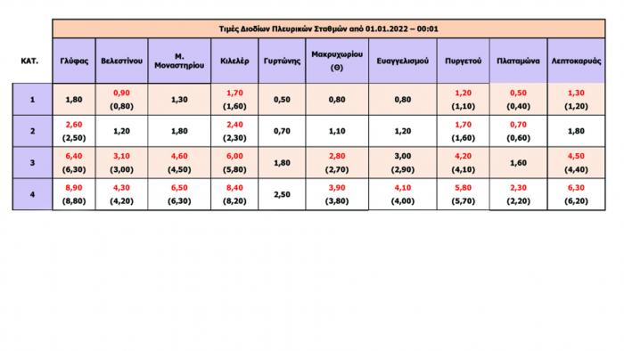 Με κόκκινο χρώμα είναι οι νέες τιμές του 2022.
