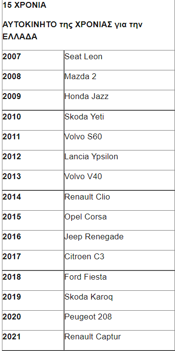 15 χρόνια Αυτοκίνητο της Χρονιάς για την Ελλάδα