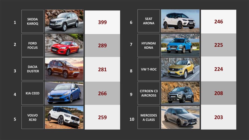 Τα 10 αυτοκίνητα που πέρασαν στην τελική φάση ήταν (με αλφαβητική σειρά) τα Citroen C3 Aircross, Dacia Duster, Ford Focus, Hyundai Kona, Kia Ceed, Mercedes A-Class, Seat Arona, Skoda Karoq, Volvo XC40, VW T-Roc. Και από αυτά νικητής με 399 βαθμούς αναδείχθηκε το Skoda Karoq που κέρδισε τον τίτλο «Αυτοκίνητο του 2019» .