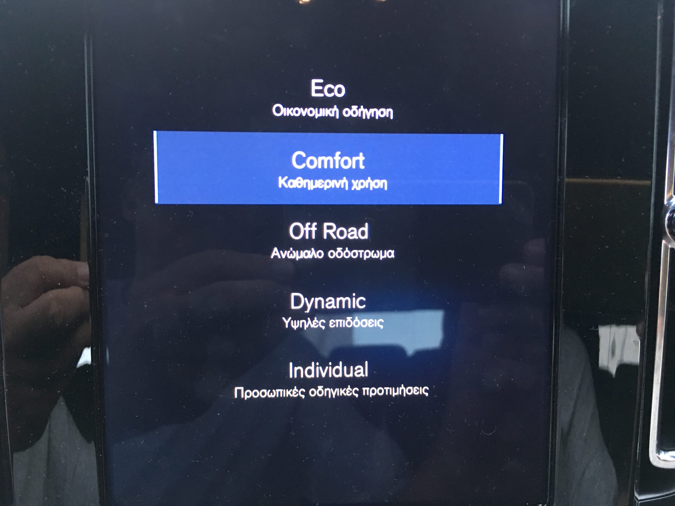 Η οθόνη αφής,9 ιντσών σε στυλ tablet,καταργεί όλους τους διακόπτες με εξαίρεση αυτούς του κλιματισμού και των πέντε διαφορετικών προγραμμάτων που βρίσκονται κάτω και δεξιά από την οθόνη. Ο οδηγός ανάλογα με το πώς θέλει να κινηθεί επιλέγει ένα από τα προγράμματα οδήγησης. Κάθε ένδειξη που επιλέγει φαίνεται στον πίνακα οργάνων.
