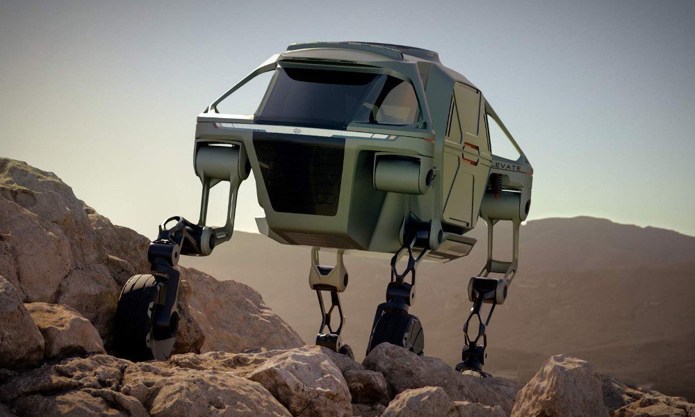 Το “Elevate” συνδυάζει παραδοσιακούς τροχούς με αναδιπλούμενα ρομποτικά πόδια που αναπτύσσονται για τις μετακινήσεις σε ανώμαλα, επικίνδυνα εδάφη και μπορεί να χρησιμοποιηθεί ακόμη και ως ταξί που θα ανεβαίνει σκαλοπάτια για να παραλαμβάνει πελάτες με τα αναπηρικά τους αμαξίδια.