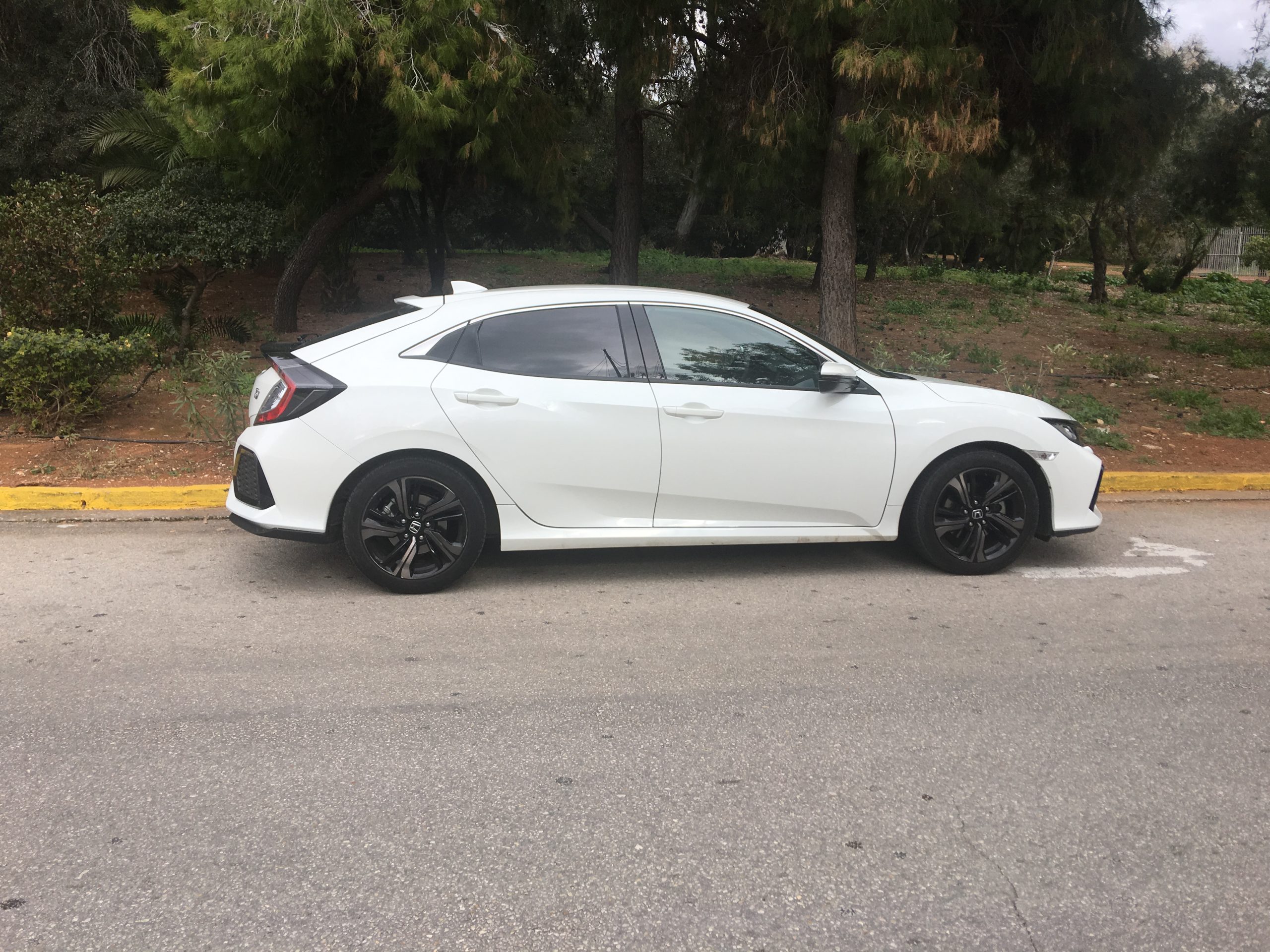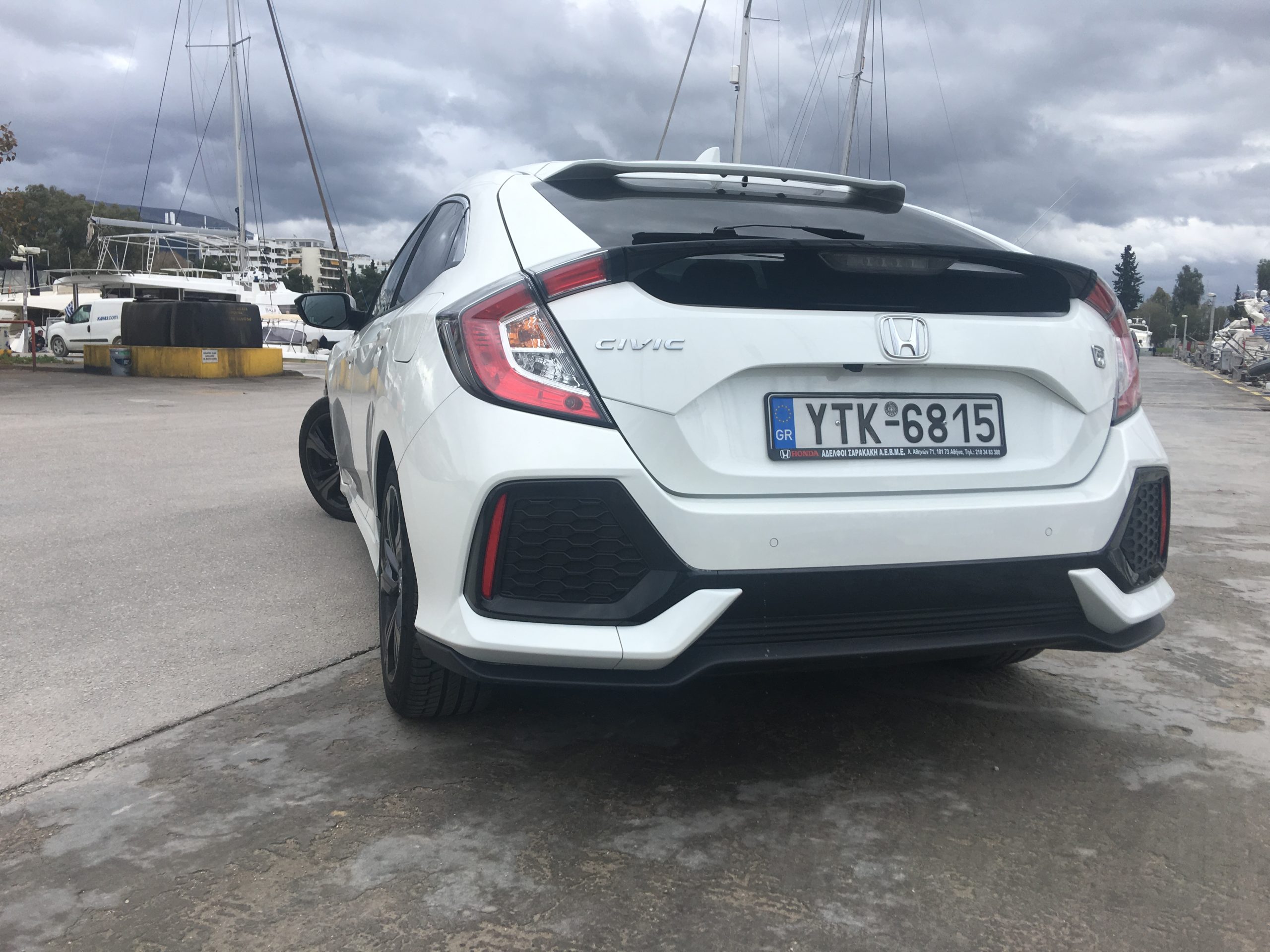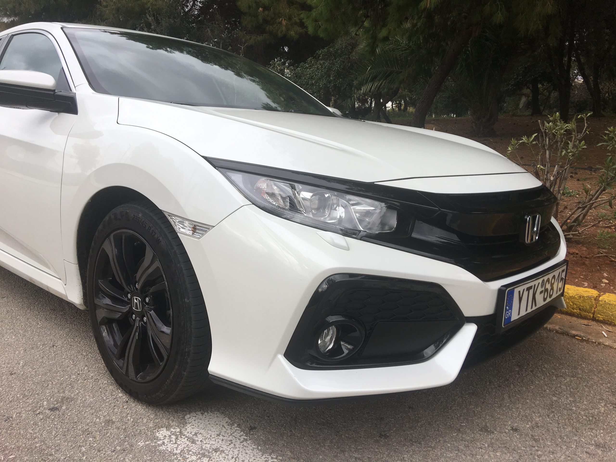 Το σημερινό Civic όπως είχαμε πει και την προηγούμενη φορά είναι η 10η γενιά Civic. Το εκπληκτικό με τους σχεδιαστές είναι ότι κάθε φορά όταν παρουσιάζουν μια καινούργια γενιά Civic δίνουν ένα νέο look πιο επιθετικό, πιο μοντέρνο, πιο αεροδυναμικό, πιο όμορφο. Παρουσιάζουν κάτι διαφορετικό. Τα μακρόστενα φωτιστικά σώματα και οι μεγάλοι αεραγωγοί στον προφυλακτήρα δίνουν το διαφορετικό look στο Civic.