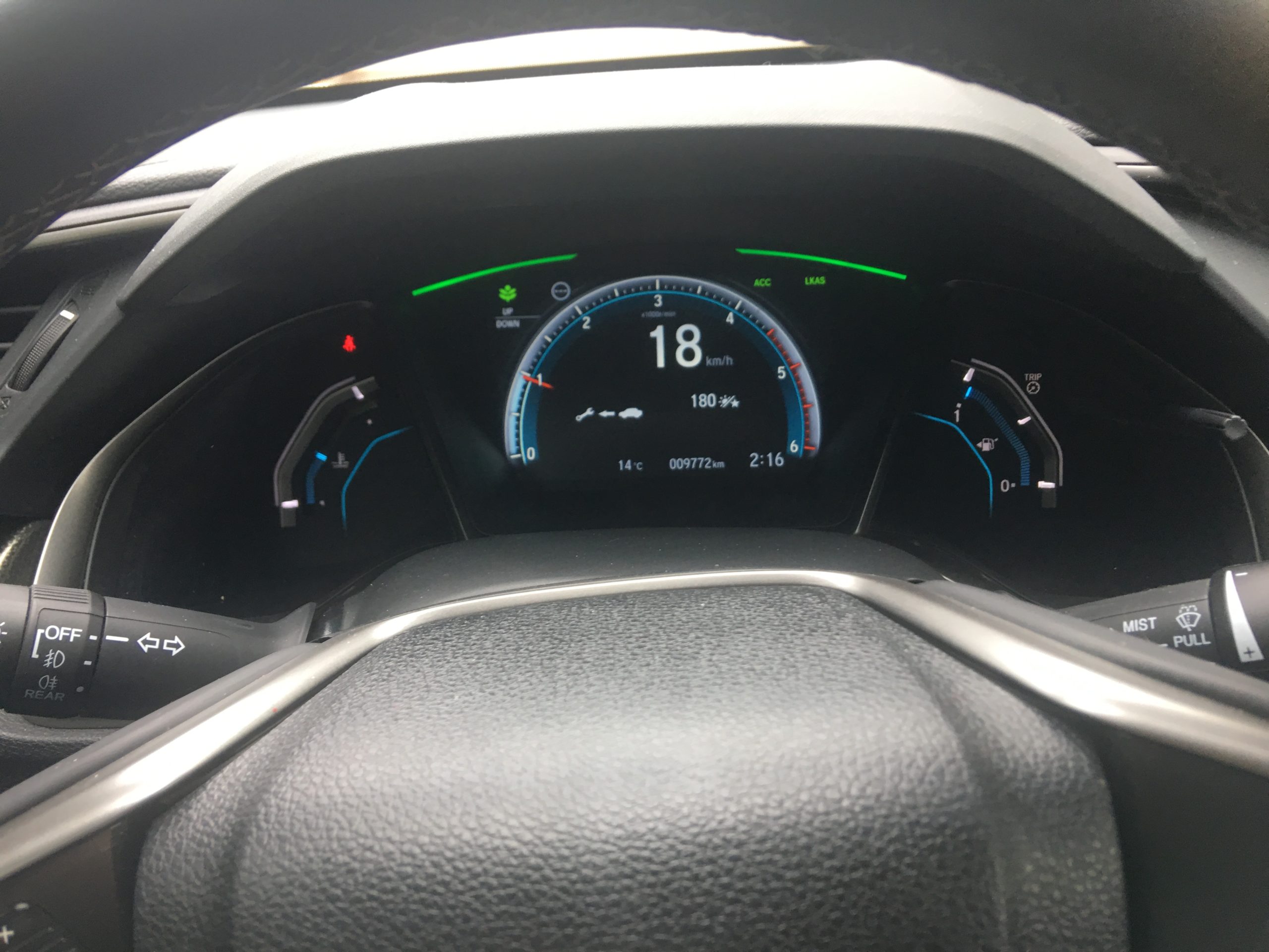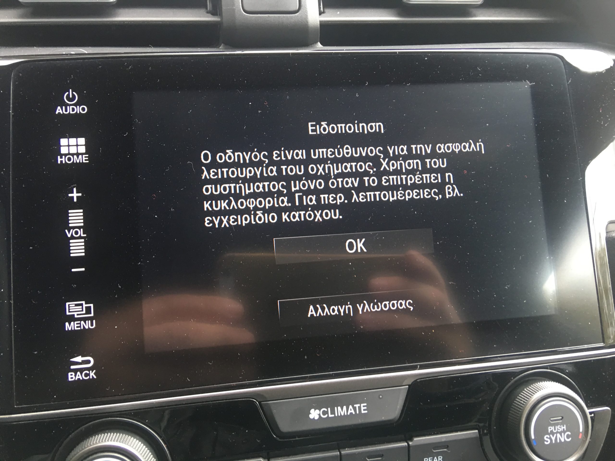 Για τον οδηγό χρήσιμες είναι οι πληροφορίες που βλέπει στη μεγάλη οθόνη 7″ του συστήματος συνδεσιμότητας Honda CONNECT, 2ης γενιάς για εφαρμογές Apple CarPlay και Android Auto. Η οθόνη έχει πολύ καλή ανάλυση και επαρκή φωτεινότητα. Εκτός από το DAB ψηφιακό ραδιόφωνο δίνεται η δυνατότητα να αναπαραχθούν αρχεία από θύρα USB, θύρα AUX και θύρα HDMI. Οι χάρτες και το σύστημα πλοήγησης είναι αναλυτικοί και αναγνωρίζουν μέχρι και το υψόμετρο που βρίσκεται το Civic. Το παρκάρισμα – παρά το γεγονός ότι το πίσω σπόιλερ δυσκολεύει- μπορώ να πώ ότι είναι εύκολο χάρη στην κάμερα οπισθοπορείας.
