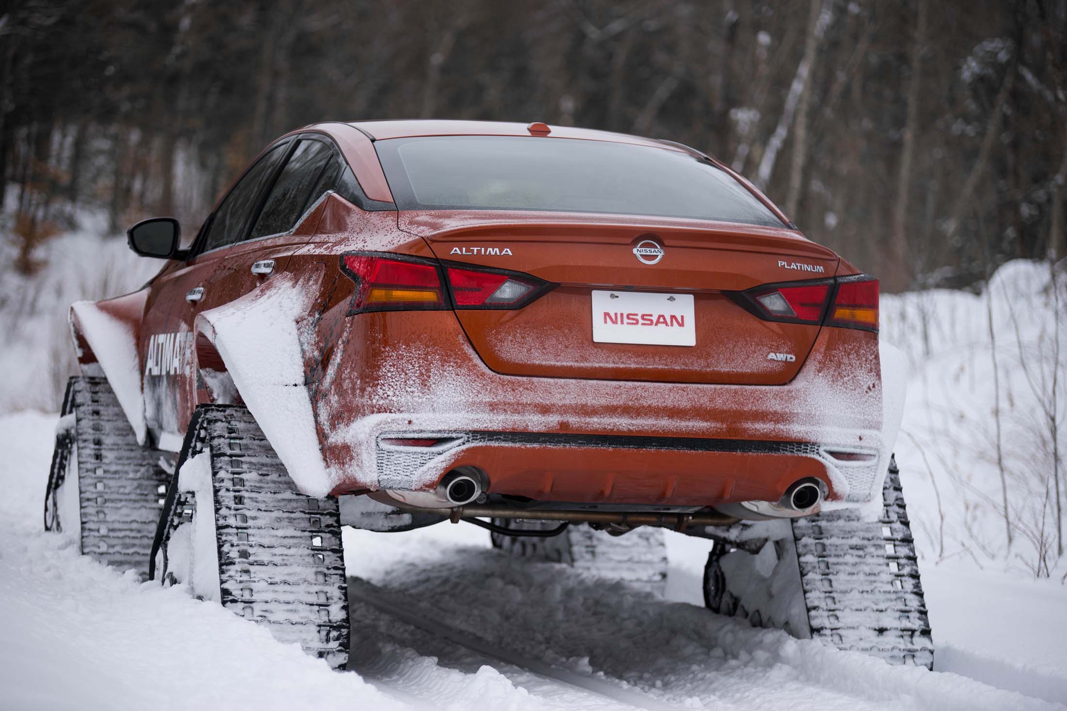 Είναι ένα sedan που δεν μοιάζει με τίποτα από όσα μας έχει παρουσιάσει η Nissan. Στην ουσία πρόκειται για ένα project που αντιπροσωπεύει μια νέα εποχή στην τετρακίνηση (AWD) και μια πρόσθετη επιλογή για τον Καναδό υποψήφιο αγοραστή. Με την κωδική ονομασία “Altima-te AWD”, αυτό το μοναδικό όχημα, βασίζεται στο νέο Nissan Altima AWD και συνεχίζει το “έθιμο” της Nissan που θέλει να δημιουργεί επιθετικά, μοναδικά μοντέλα, εξοπλισμένα με ένα σύστημα ερπυστριών βαρέως τύπου.