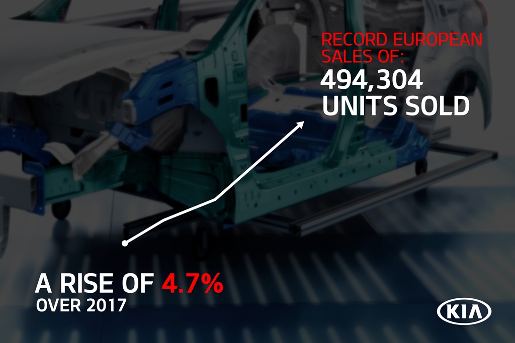 Νέο ρεκόρ πωλήσεων (494.304 μονάδες) στην Ευρώπη πέτυχε η Kia Motors το 2018. Η αύξηση αυτή μεταφράζεται σε αύξηση 4,7% σε σχέση με το 2017.