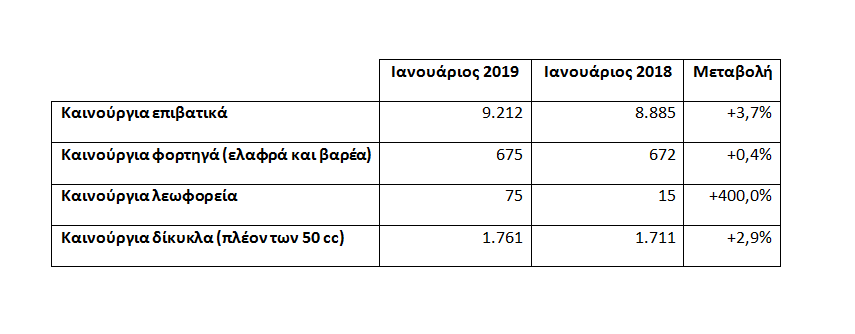 Μπορεί να μην ήταν εντυπωσιακή η άνοδος στις πωλήσεις των καινούργιων αυτοκινήτων, ωστόσο ο μήνας Ιανουάριος 2019, έκλεισε με άνοδο κατά +3,7% σε σχέση με τις ταξινομήσεις του Ιανουαρίου 2018. Αυτό προκύπτει από τα στοιχεία της ΕΛΣΤΑΤ και την επεξεργασία του ΣΕΑΑ.
