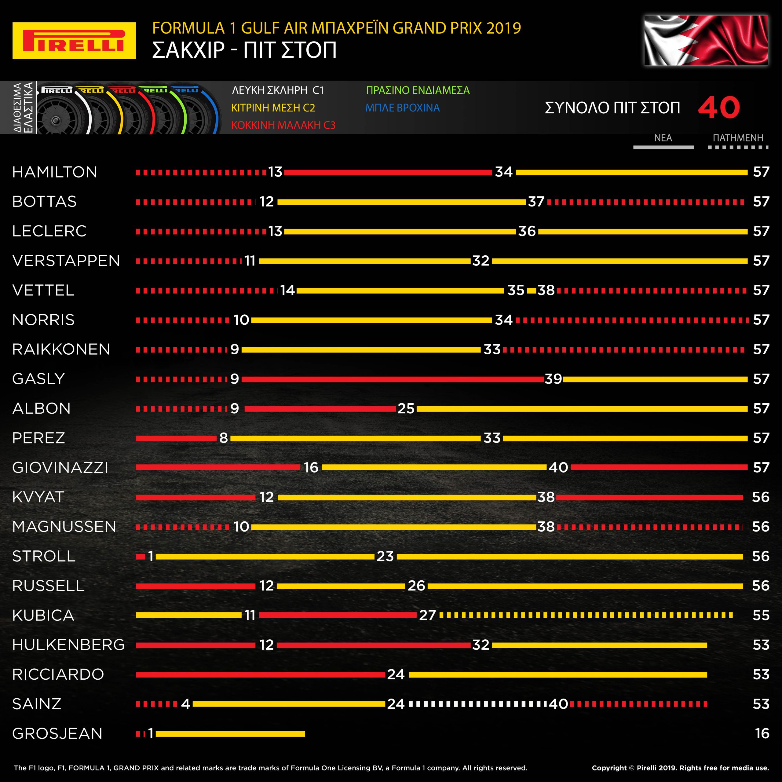 Οι τρεις οδηγοί που ανέβηκαν στο βάθρο ακολούθησαν διαφορετικές στρατηγικές δυο αλλαγών σ’ ένα συναρπαστικό αγώνα που είχε ως χαρακτηριστικό πολλές διαφορετικές τακτικές καθώς η πτώση απόδοσης των ελαστικών, λόγω θερμικής καταπόνησης, ήταν σε υψηλά επίπεδα.