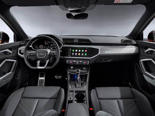 Εσωτερικό: Πολυτέλεια, δυναμισμός και άνεση – Το Audi Q3 Sportback έχει μήκος 4,50 μέτρα, πλάτος 1,84 και ύψος 1,56 με το μεταξόνιο στα 2,68 μέτρα, με αποτέλεσμα ένα μεγάλο και εξαιρετικά ευμετάβλητο εσωτερικό. Τα πίσω καθίσματα προσφέρουν χώρο για τρία άτομα και μπορούν να μετακινηθούν 130 χιλιοστά κατά μήκος, ήδη από τη βασική έκδοση. Οι πλάτες τους χωρίζονται σε τρία τμήματα και η κλίση τους μπορεί να ρυθμιστεί σε επτά θέσεις. Ο χώρος αποσκευών κυμαίνεται από τα 530 έως και τα 1.400 λίτρα. Το δάπεδο φόρτωσης μπορεί να διαχωριστεί σε δύο επίπεδα, με το πίσω ράφι να βρίσκεται κάτω από αυτό. Προαιρετικά, η Audi προσφέρει ηλεκτρική πόρτα για το χώρο αποσκευών που μπορεί να ανοίξει ή να κλείσει με την χαρακτηριστική κίνηση του ποδιού. Τα εμπρός καθίσματα – προαιρετικά ηλεκτρικά ρυθμιζόμενα και θερμαινόμενα – προσφέρουν μια σπορ θέση οδήγησης και πολύ υψηλά επίπεδα άνεσης. Ανάλογα με τον εξοπλισμό, υπάρχουν σπορ καθίσματα με ραφές σε χρώμα αντίθεσης και χρωματιστές λωρίδες κατά μήκος των πλαϊνών. Επιπλέον, οι επενδύσεις αλκαντάρα στον πίνακα οργάνων και στα υποβραχιόνια υπογραμμίζουν το μεταμοντέρνο σχεδιασμό. Το προαιρετικό πακέτο φωτισμού καμπίνας προσφέρει επιλογές ανάμεσα σε 30 διαφορετικά χρώματα.