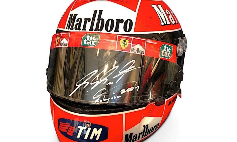 Αυτή τη φορά είναι ο οίκος RM Sotheby’s, που δημοπρατεί ένα κράνος Ferrari που χρησιμοποίησε ο Schumacher το 2001. Το Schuberth QF1, το φορούσε όταν κέρδισε το Grand Prix Μαλαισίας του 2001. Το κράνος στη συνέχεια χρησιμοποιήθηκε ξανά στο Grand Prix της Βαρκελώνης και αργότερα το φόρεσε ο Γερμανός για την φωτογράφιση διαφήμισης για την εταιρία Schuberth.Το κράνος είναι κατασκευασμένο από ίνες άνθρακα και συνοδεύεται από την ζελατίνα, που χρησιμοποιήθηκε κατά τη διάρκεια του Grand Prix της Μαλαισίας και έχει την υπογραφή του Michael Schumacher. Φυσικά όλα τα παραπάνω έχουν πιστοποιητικό γνησιότητας, που πιστοποιεί την αυθεντικότητά τους και είναι αρκετό για να κάνει τον οίκο Sotheby’s να υπολογίζει πως η αξία του μπορεί να φτάσει τα 60.000 ευρώ.