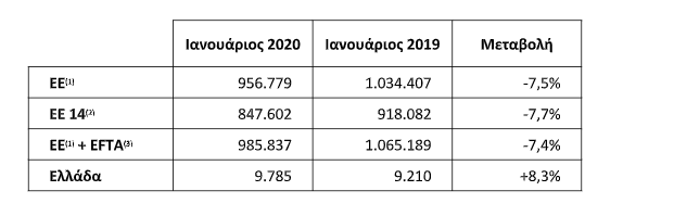 (1) ΕΕ των 27, εκτός της Μάλτας, που δεν αποδίδει στοιχεία σε μηνιαία βάση.